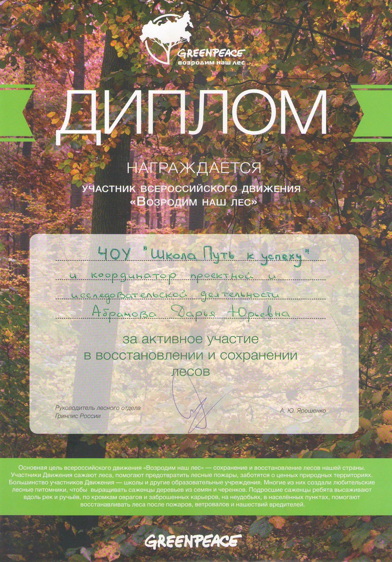Участие в проекте «Возродим наш лес»