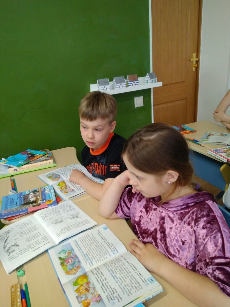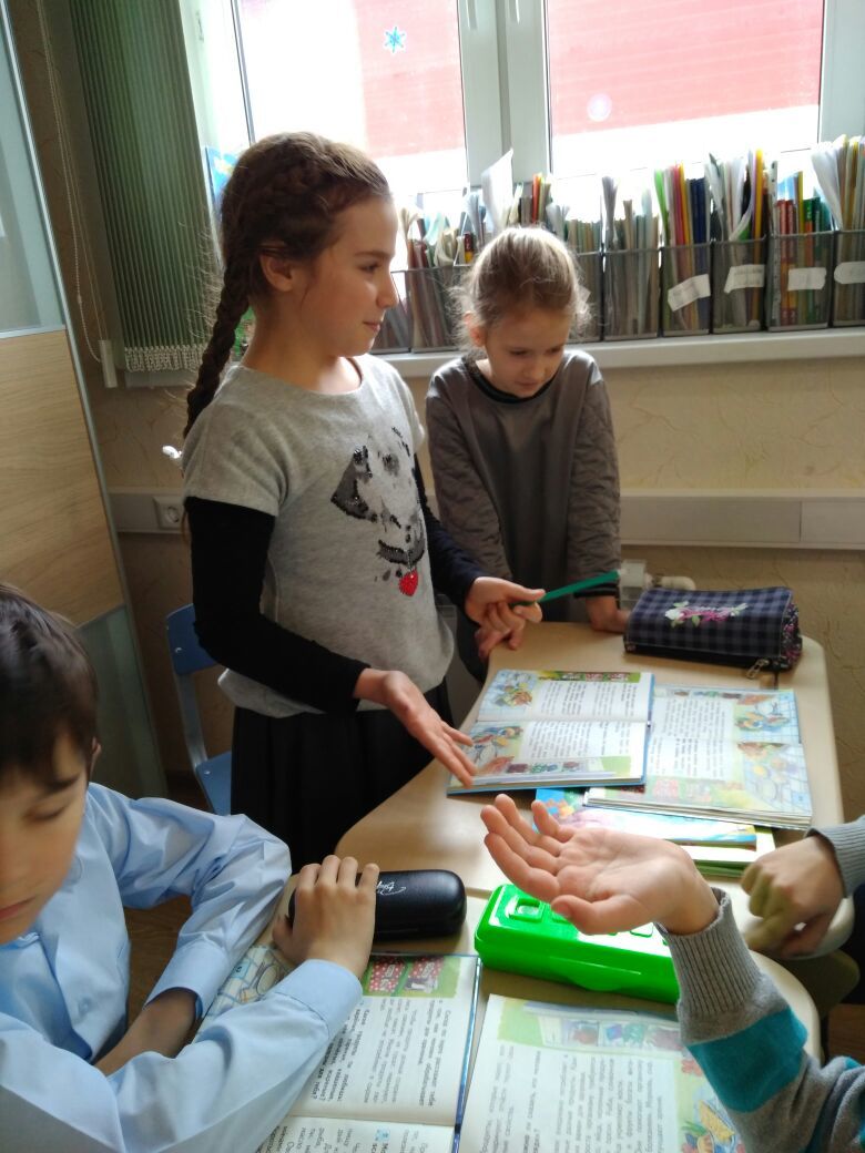 Ребята приступили к изучению материала по учебнику, сами отвечали на вопросы и выполняли задания в тетрадях для самостоятельных работ. А ведущий контролировал работу своей группы.
