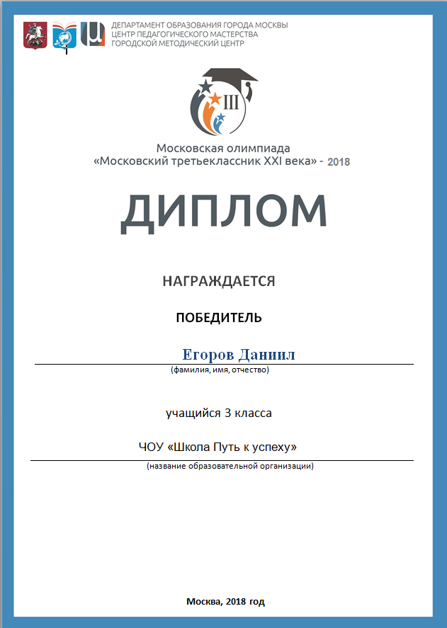 Награждение участников Олимпиад и Конкурсов