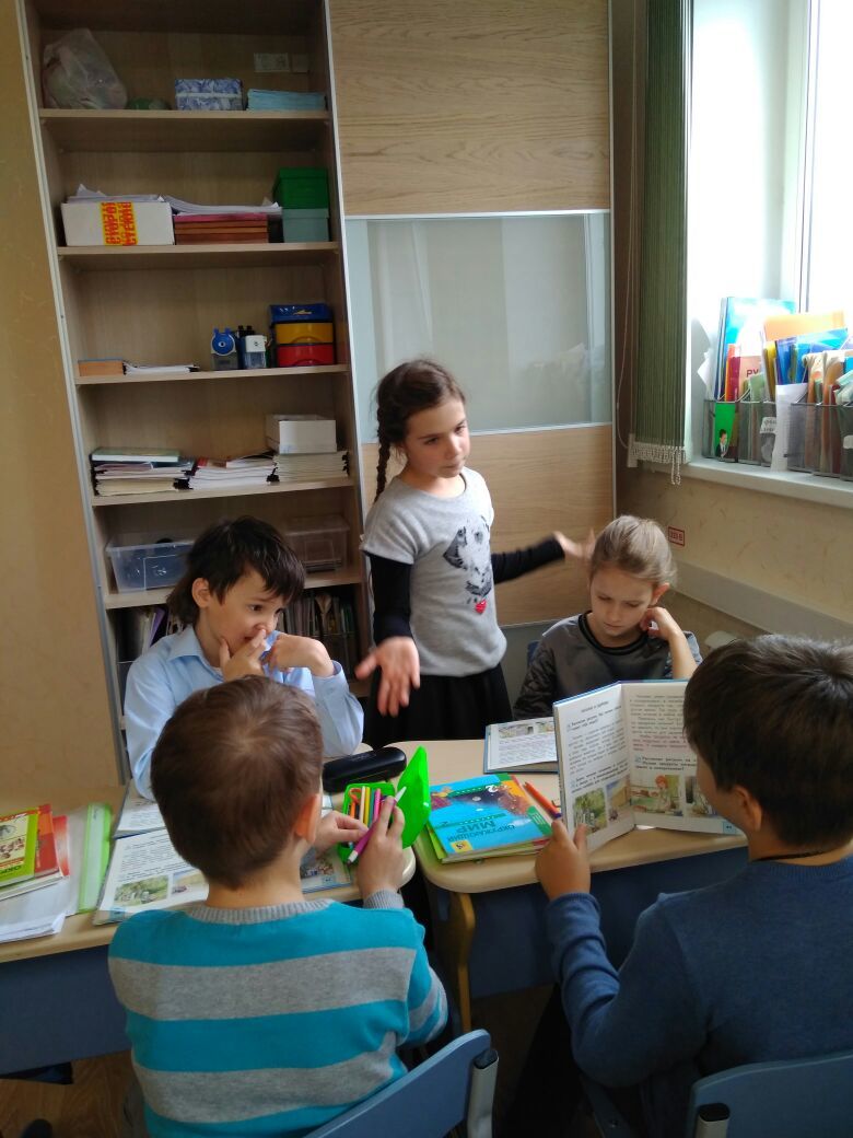 Именно ей и занимались наши второклассники. В самом начале урока учитель разделил детей на команды, назначил ведущих и обозначил условие – в конце занятия проверяет любую тетрадь из группы, а также проводит опрос на знание пройденного материала. Именно эту отметку получают все участники этой группы.