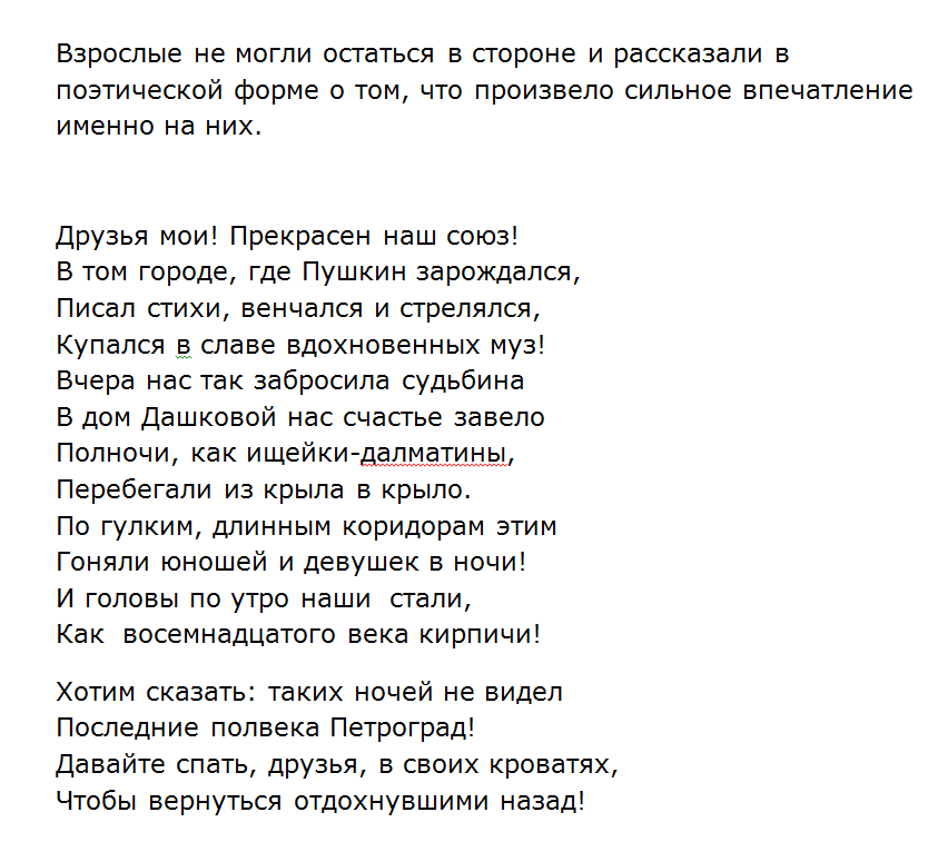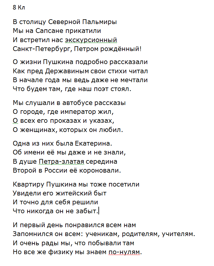 Ребята, вдохновленные поездкой в Санкт-Петербург, написали стихи собственного сочинения, в которых они делились впечатлениями. У кого-то это были стихи, а у кого-то рисунки.