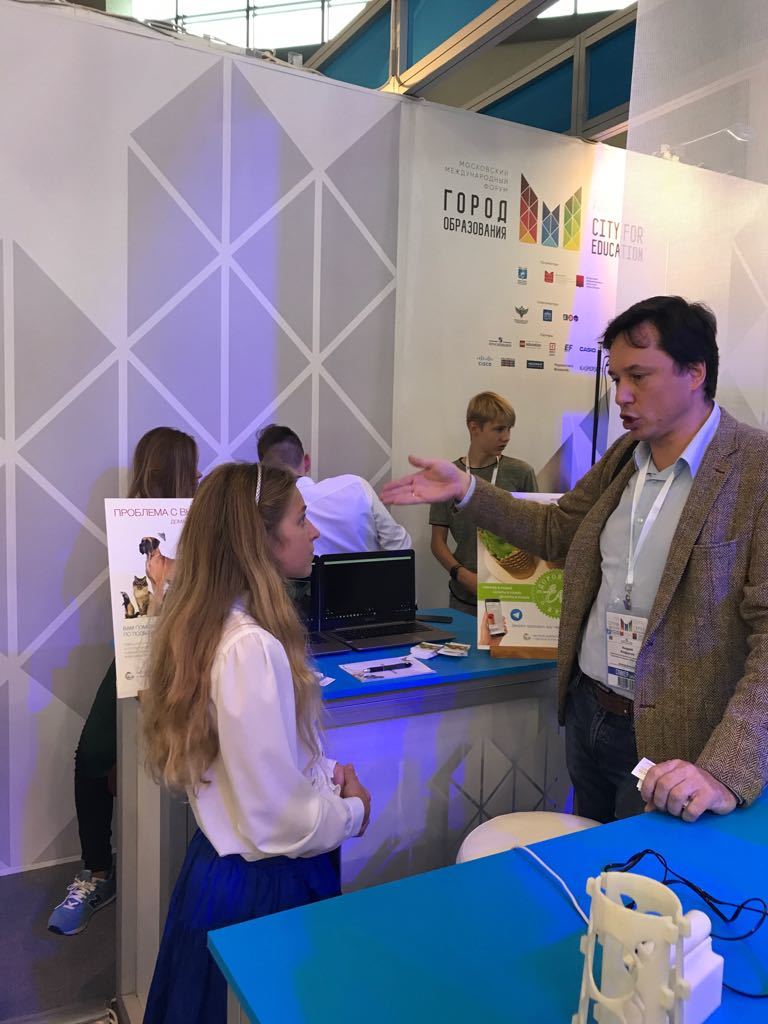7 сентября 2017 года проекты 7 класса "Здоровая еда в рожке" и "Приложение по выбору домашнего животного" участвуют на Московском международном форуме "Город образования" на аллее стартапов.