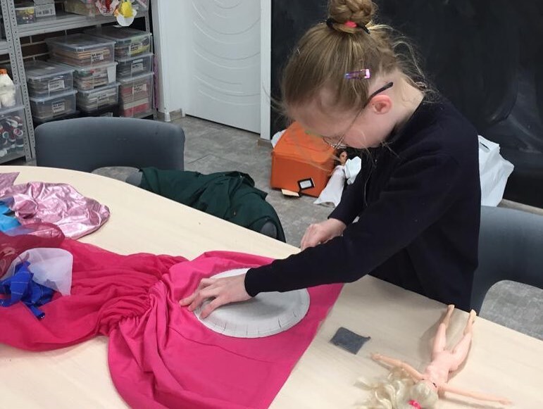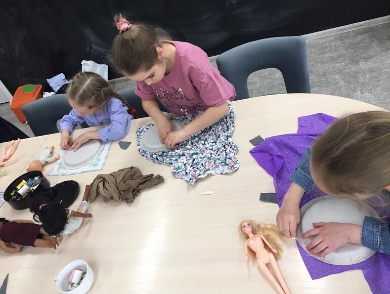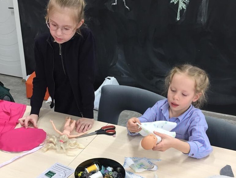 Соня Заклязьминская в рамках реализации своего проекта «Не просто мусор» провела мастер-класс для наших малышей «Юбка для куклы»👗