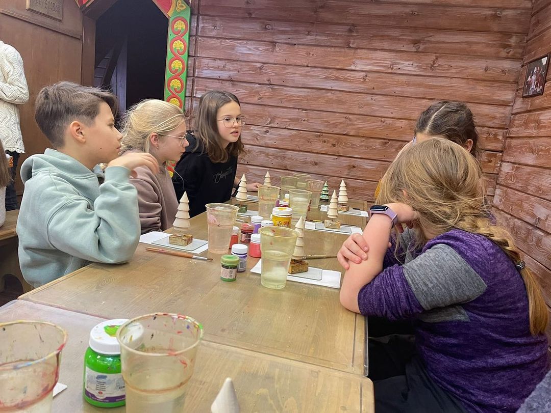 В первый день поездки наши пятиклассники посетили терем снежной спутницы дедушки Мороза, а также побывали в музее льна и бересты, где научились из коры делать браслеты и закладки для книг. 📚