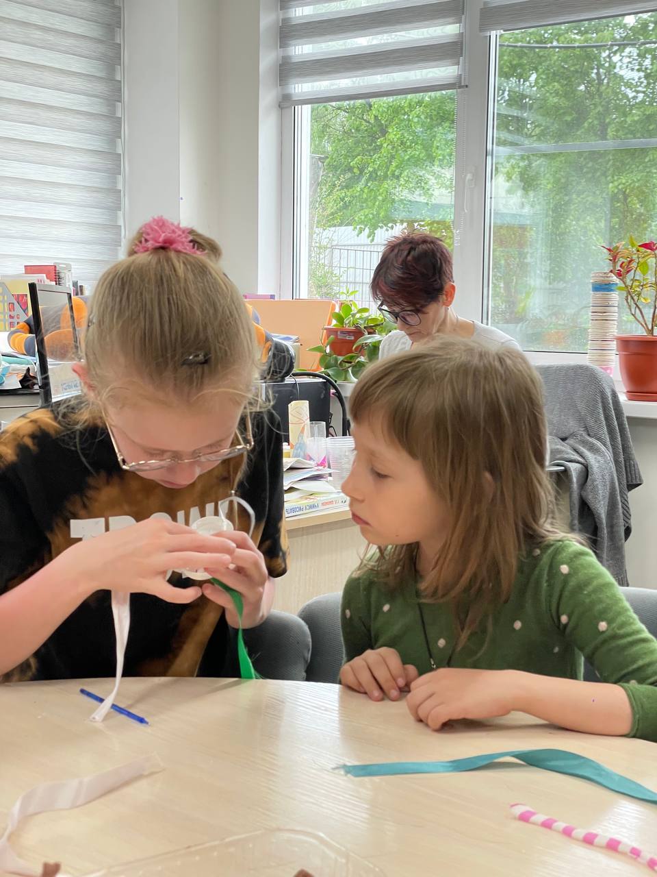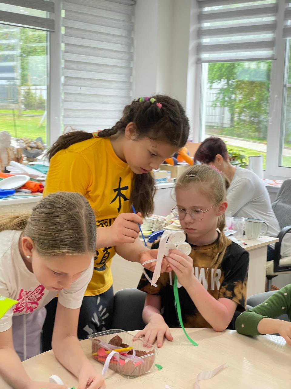 Соня Заклязьминская, ученица будущего 6 класса, провела мастер-класс по созданию музыки ветра, или музыкальной подвески, для ребят младшей подгруппы лагеря. Помощницей Сони по организации работы выступила Настя Кириленко, ученица будущего 5 класса. Мастер-класс прошёл весело и очень продуктивно)))
